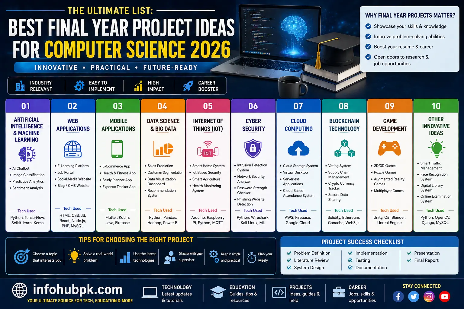 AI Projects for Students Blockchain Project Ideas Computer Science FYP 2026 Final Year Project Ideas IoT FYP IT Graduation Projects Software Engineering Projects Student Project Guide Unique Tech Ideas Web Development Projects