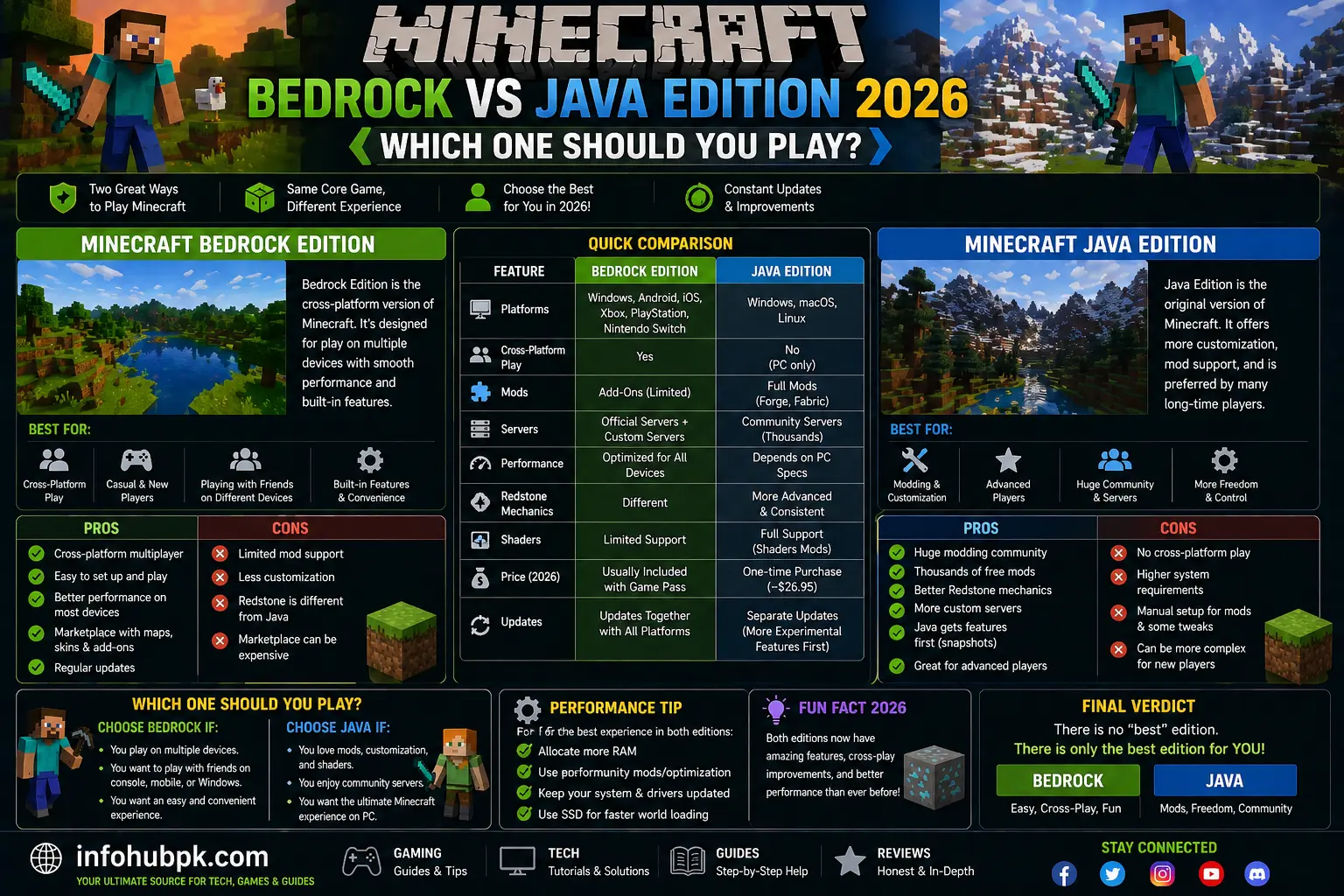 It is the ultimate debate that has split the community for years: Minecraft Bedrock vs Java Edition. Even in 2026, with both versions reaching the 1.21 update and beyond, the choice isn’t as simple as it seems. While Microsoft now bundles both versions together for PC players, knowing which one to actually install and play is crucial for your experience.
